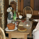 The Tate Baby House, dating from 1760, was owned by the same family for 170 years, passed down from mother to eldest daughter. It includes original wallpapers and hand-painted paneling. In the lying-in room all set up for a home childbirth, Joanna, the pregnant doll, is ready with clean linens and a beautiful gold and red cradle for the newcomer.