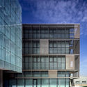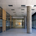 The North longitudinal block has a metal panels façade, similar to the industrial buildings of the factory. But to the South it has a double façade composed by a skin of glass, and a second façade of horizontal metal louvers for light sun control.