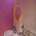 Finally, bathrooms are covered with a special coating where people can write phrases and drawings with colored chalks.