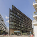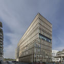 From the architect. Boursorama Banque has moved into its new Parisian head office in Boulogne-Billancourt designed by Studioninedots. In collaboration with Ateliers 115, Studioninedots created a robust and clear building distinguished by its subtle recesses and terraces but foremost by the striking facade that interplays rhythms of bronze-coloured blades.