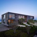 Perched between ocean and pond, Field House almost appears to allow the landscape to run through it. Acting as both an extension of its surroundings and as a shelter from it, the house is conceived with flooding and wind in mind. Field House is constructed on piles and is comprised of a steel frame clad in durable mahogany, with anodized aluminum framed windows and doors, and high density limestone.