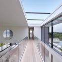 The east wing of the house functions as guest and family bedrooms on both floors. Conservative in size, each forges a relationship with the exterior through floor to ceiling glass, properly screened, again to avoid heat gain as much as possible. The second floor bridge connects the children's' bedrooms to the master suite and a sitting room with a glass corner.