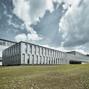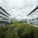 In its entirety, the building represents an intelligent synergy of economic and architectural considerations. On the outside, the wrap around chequerboard façade accentuates the balanced volume's sculptural qualities while ensuring flexibility of use with its modular, repeat- ing open and closed elements. On the inside, the radically horizontal layout encourages communication and allows for efficient floor plans. Organizational efficiency is complemented by operational efficiency: the building taps into the campus' 'anergy grid', an innovative system for harvesting, storing and distributing low-grade energy, and relies on a common-sense low-tech building services strategy for carbon-neutral energy delivery and ease of maintenance.