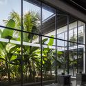 Right at the centerof this man-made construction, 16m x 16m open-air garden celebrates a serene fragment of the tropical garden and refreshes the working spaces with the natural elements. When all the rotating doors are opened, the air flows could go through and refresh the environment inside the building. The courtyard itself, along with the water feature could functionally build up its own tropical diverse ecology with sensual connection to changing light and seasonal qualitative.