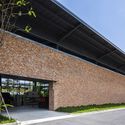 Initially, to meet the demand of the standard budget for normal built-in factories, cubic simple form with 8m-span grid system was chosen as the dominant mass so as to match the neighborhood while reducing the expenditures. Using bricks for the exterior of the building would provide the opportunities to let the building itself work as a landmark with natural clay color contrast to the unobstructed neighborhood. Old bricks were collected from abandoned colonial buildings in the Mekong Delta area and recycled for the exterior layer. In order to decrease the weightiness of the massive brick cube as well as provide the air ventilation for the whole building, an enormous roof made by galvanized corrugated metal is lifted up with 3-meter-cantilivered-canopy in order to protect the indoor working areas from harsh sunlight, gusts and squalls.