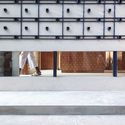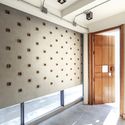 Strongly concept of fabric weaving show at the facade. The pattern has defined by two parts which are lines and square holes. Lines create general pattern for the simple and gentle look. Square holes play a role as the connection between exterior and interior space. At the same time, they reflect the basic theory of fabric weave. Micro square holes connect outdoor and indoor atmosphere by allow beams of sunlight get into the shop.