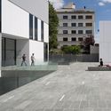 Located in a mixed urban fabric composed of constructions that each play their own partition, from houses to tall buildings, the new facility seeks appeasement and subtlety in the same way a musical composition organizes dissonant harmonies. The color white establishes calm and neutrality on volumes that nonetheless remain impressive, although some of it lies beneath the piazza. The visible part of this iceberg is a platonic cube that rises as an integral whole to its roof-terrace, a fifth wall covered with a metallic web that hides the technical equipment and evacuation air vents.