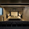 The auditorium has a proscenium stage and a seating capacity of 221; it can be configured for different kinds of shows (dance, plays, choirs, opera, concerts and contemporary music). There is a sound and light control room, an equipped grid above the stage, technical walkways over the hall and a retractable orchestra pit made of mobile panels in the shape of a concave shell to concentrate the sound for symphonies.
