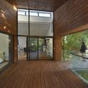 A. A systematic organization of open and semi-open spaces was used to enhance the presence of nature in the interior spaces. The main semi-open space is a void on the first floor of the main cubical form. The strategic position of this void provides both physical connection to the private lounge and the master bedroom as well as visual connection to the lake. The semi-open space is also connected to the terrace on the lake side by the means of a bridge. This terrace is a perfect view point of the lake.