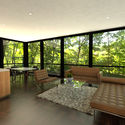 The modular glass house was inspired by the original but has been re‐imagined as a series of modular components that can be pre‐fabricated and shipped to any site. The design follows the principals of the original by introducing a typical window bay and structure that become the outer skin of the building. Alan Ritchie sees residing in a glass house as an enhancement of the living experience by being immersed in your natural surroundings.