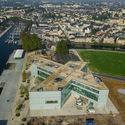 Bibliothèque Alexis de Tocqueville is a public library for the metropolitan region Caen la Mer in Normandy, France. The 12,000 m2 multimedia library is located at the tip of the peninsula that extends out from the city of Caen to the English Channel. Its key position – between the city's historic core and an area of Caen that is being developed – supports the city's ambition for the library to become a new civic center. The library's glass facade visually connects the adjacent park, pedestrian pathway and waterfront plaza to the interior and together with two large ground floor entrances at both sides of the building, enables a fluid interaction of the library with its surroundings. On the upper floors, the urban belvedere provides unobstructed views in all four directions.