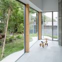 With a flag shaped site, bound on every side by close neighbors, the understandable instinct might be to step away from the city, retreat behind walls where privacy is better assured. The family that purchased the site saw instead a chance to be as open as possible, using the small degree of isolation as an opportunity to connect to the metropolis from a slight remove. Although the neighbors are close, the tendency in Tokyo is to reject the city and build closed walls, ironically allowing the family to take the opposite stance and open their home without loss of privacy. In this way the site is not unlike a clearing in the midst of a forest.