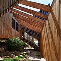 At its inception the landscape and spaces in-between the house were conceived as of equal importance as the building itself; screens and finely detailed pergola elements provide sheltered zones around the house that reveal themselves as a sequence of distinct spaces with varying qualities of light and shadow.
