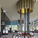 From concerts and large gatherings to small group meetings and quiet study sessions. Internally, contemporary materials such as glass and metal are balanced with wood to add warmth and richness to the learning space. Meanwhile, a covered outdoor gathering area supports large numbers of students in an open-air learning setting.