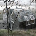 This restriction led to the idea of making a non identical twin with its own strong character, placed side by side with the old house. Like yin and yang, the new and the old part of the house complement each other, both practically and visually. The slate extension sits like a rock next to its' twin. It anchors its brother firmly to the ground and protects him from the strong sea wind.