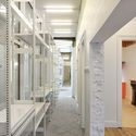 A long shop – along the shop. Following the sharp line that is a wall of glass. From front façade to garden at the back.