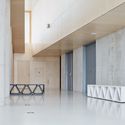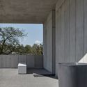 The fifth façade, i.e. the roof of this building is the bearer of all essential information about the building. It has been abstracted to its maximum. A roof without any details is like a way running into infinity. The means of showing the way was a fair-face concrete outside the building and plywood board inside of it. Vertical movement and its visual representation is a dilemma of most religious buildings. The connection between Heaven and Earth need not necessarily be a monologue; it can be an invitation for a journey, and for a gradual ascent up from the dirt of this world. In this case, the ascent to the light, which has been depicted by excellent Czech graphic artists with their minimalistic illustrations. The symbol at the end of the journey has its strong haptic light quality as a clear target.